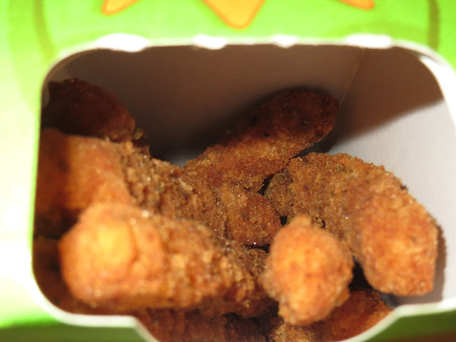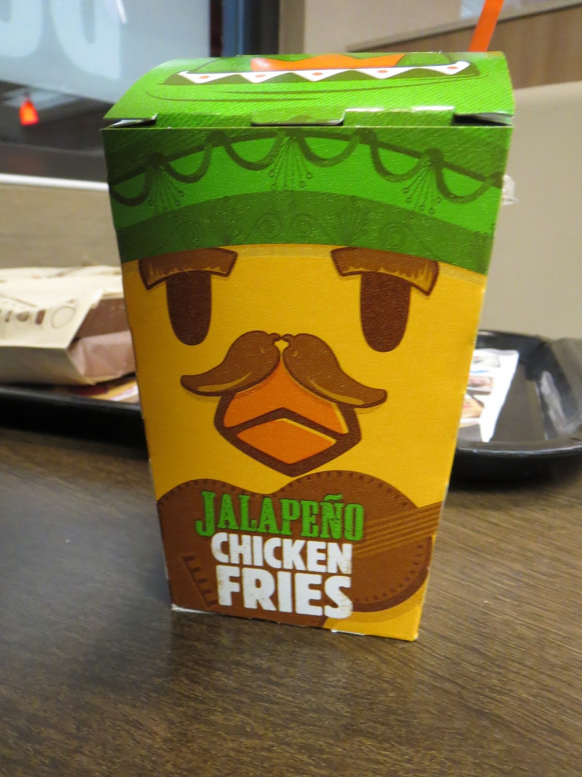 Alas, while the marketing of the products are, well, dubious, to say the least, you really can't argue with the gustatory quality of the fries themselves (which, to those who aren't in the know, aren't actually fries ... they are really teeny, tiny slivers of breaded chicken, i.e., nuggets shaped like a lower case "l.") They are comparatively spicy, but seeing as how even faux Mexican fast food juggernauts like Taco Bell and Del Taco can't produce a hot sauce worth a darn, it really shouldn't come as a surprise that these items are probably a four, maybe a five on the adjusted, American consumer heat index. And if you are using the actual Scoville scale? Eh, it might break into the third tier from the bottom. If you are feeling particularly generous that evening.