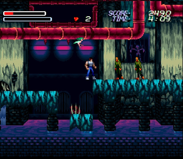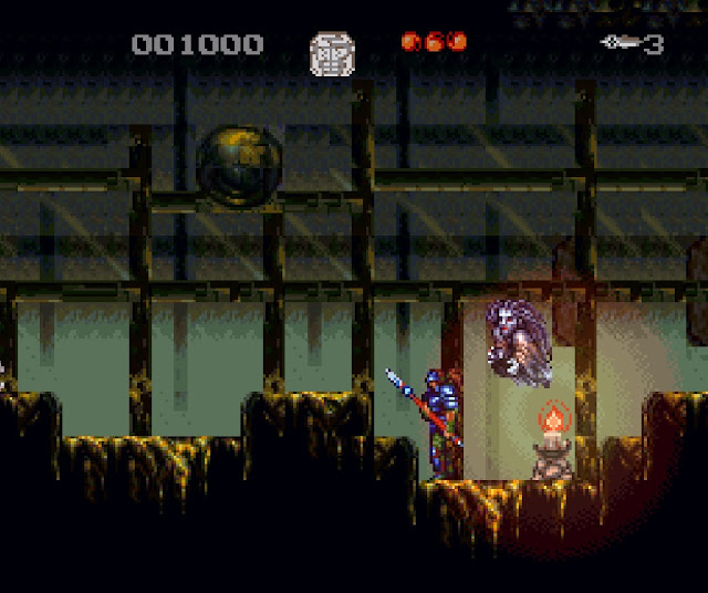 Ahh, shit, this game rules. Imagine, if you will, what would happen if one evening, Castlevania and Contra got rip-roaring drunk and made sweet, Satanic love all night. Well, nine months later, I'd imagine the horrid abomination crawling forth from the womb to resemble something like Majyuo (the name roughly translates into "king of the demons"), a run and gun platformer that has so many awesome little touches that, at times, you almost want to pause the game so you can soak up all the kooky awesomeness. Initially playing a dude who looks like Rambo cosplaying as Hank Hill, eventually the side scrolling shooter takes an unexpected turn into Altered Beast territory, with your avatar turning into - among other things - a laser blasting insect warrior who can teleport underground and emerge in a blaze of enemy-destroying hellfire, a winged peacock dude who can shoot mind boomerangs and do capoeira rolls and, my personal favorite, a purple dragon with a beer bully whose fully charged special attack appears to be the ability to barf full-screen sized wolf ghost heads at people. This game has to have some of the most inspired backdrops of any SNES game (really, they are so trippy, they make Yoshi's Island look like an Excel spreadsheet) and the boss fights - while hard as fucking shit - are nonetheless a hoot to churn through. The steep difficulty curve may turn off most gamers, but if you have a thing for weird-ass (and hard-ass) action platformers, Majyuo is DEFINITELY a game you need to go out of your way to experience.
