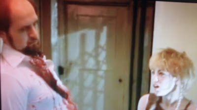 Apparently, Reno, his girlfriend and the girl from the club all live together in the same apartment, “Three’s Company”-style. They argue about bills, and Reno returns to his magnum opus - this giant-assed painting of a buffalo he’s been commissioned to create by some art dealer fellow. Reno plays around with the drill some more (Freudian scholars, you are going to LOVE this movie) and has nightmares about the old man from the church. We’re introduced to the art dealer that’s paying Reno to make the bison painting, and Reno asks him for a loan. After he turns him down, Reno decides to break out some binoculars and watch street muggings from the rooftop (complete with ample stock footage of ambulances, of course.)