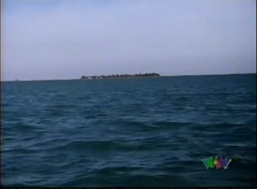 Another computer generated fish eats one of Dorf's weighing scales and an electric filleting knife pokes Dorf's tires out. Now it's time for a parody of an exercise video and ... goddamn, this is bad. It's basically just Dorf raising his hands up and down over and over again while his hairpiece flutters in the wind. We got some more sped-up scenes of Dorf almost getting killed using shoddy fishing equipment, complete with — you guessed it! — more primitive CGI effects. Oh, and at one point, Dorf uses a cartoon radar system to run over people in a pontoon boat and crash into some campers, all the while referring to random people as "krautheads."