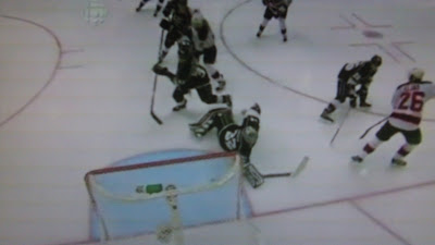 | Jonathan Quick decides to showcase some of his break-dancing skillz during the first period. |