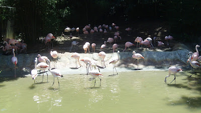 The very first thing you’ll see after passing through the ticket-taker booth at Zoo Atlanta is the flamingo exhibit. Well, unless you make a sharp turn to the left as soon as you get in, which would make the gift shop (as well as one of those hurricane-simulating arcade machines) your first observation. All in all, I suppose there’s not that much to say about flamingos. Uh, they’re pink and tall? I mean, really tall, probably about four or five feet, max. They - as well as every other animal at the zoo - also have these little plastic cuffs on them…I suppose, in case they escape, so you’ll know where to return them (because if there’s ever a rhinoceros on I-75, there’s so many damned places it could have come from, I imagine.) Not to slight any flamingo-enthusiasts out there, but I wasn’t really too enthralled by what I saw here. Then again, they did put the pen right next to a coffee stand that sells meerkat puppets and super-expensive African-Explorer action figure sets, so perhaps that explains my disinterest.