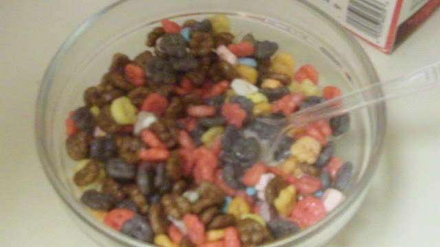 Of course, with all of the cereals housed together in one room, I suppose it's only inevitable that I would get the urge to merge all of them into a single bowl of Halloween good cheer. Well, Halloween good cheer, with a side of soy milk, anyway.