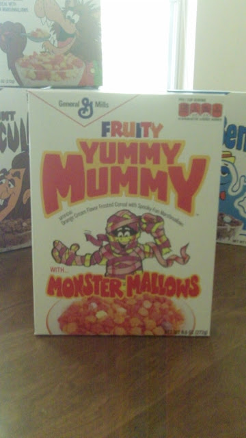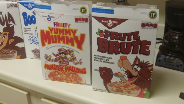 Unless you've been living underneath a rock on Pluto for the last two months, you've probably heard about General Mills' genius plan to bring back its' two long-shelved (yet long-clamored for) "lost" monster cereals -- that being, Frute Brute and Yummy Mummy. Proving yet again that our side has won the Culture War, not only did General Mills re-launch the two horror cereals for Halloween 2013, they even released some special edition boxes of the delectable foodstuffs, modeled after the iconic packaging of the 1970s and 1980s!