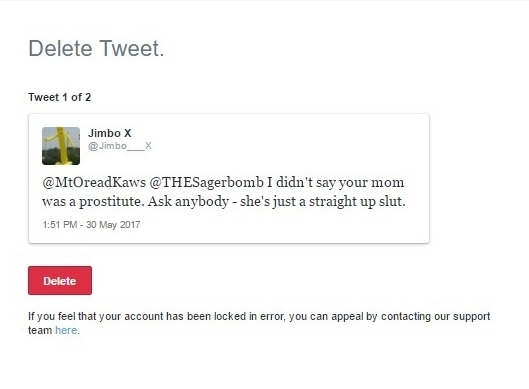 | Sorry, but deleting a tweet still doesn't make that guy's mom any less of a ho. |