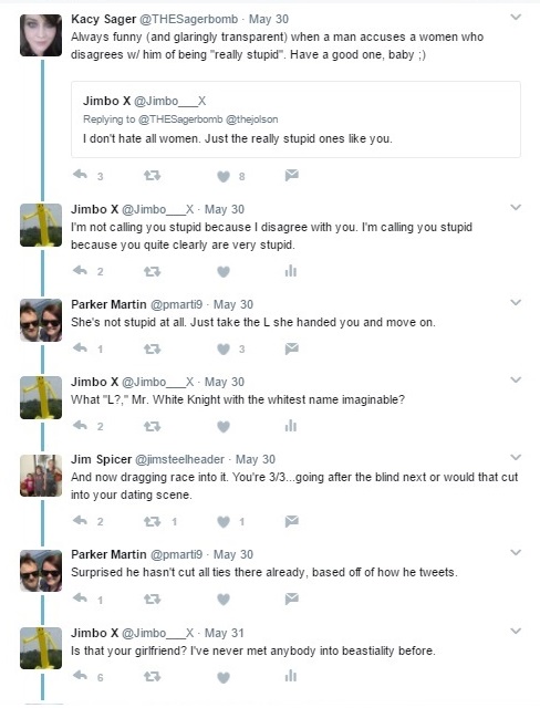 But the Twitter liberals don't have the same feelings about monkey cage rattlers like me. I don't give a shit about them, but they wallow in their resentment of me and my ilk like obsessed ex-girlfriends. Their egos are so fragile and so self-deified that the moment their ideals are questioned, condemned or mocked, they go fucking nutso. Rather than use logic or reasoning or facts to prove themselves superior, they employ the old numbers game approach to smother dissent. Surely, if we have 40 of our hive-minded idealists type curse words and post memes directed at this *one* user, that will demonstrate the righteousness of our convictions, right? Folks, let me tell you one thing - if it takes 40 people to snub out just one other person, there's a pretty strong chance the guy fighting the battle hisself ain't the one that's suffering from inadequacy issues.