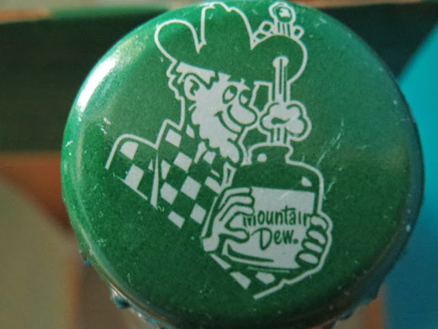 Taking home four of these bottle caps (complete with the simulated chipped paint!) is probably reason enough to purchase a pack of Dewshine. For one thing, that is just a fantastic shade of dark green, which would look right at home as a bumper on any 1970s pinball table. Secondly, the mascot cartoon himself is so authentically vintage -- just try and tell me this guy wouldn't pass for an old ABA team logo. I may have discarded the bottles as soon as I finished my beverage, but rest assured, those caps will be among my most treasured keepsakes for the foreseeable future.