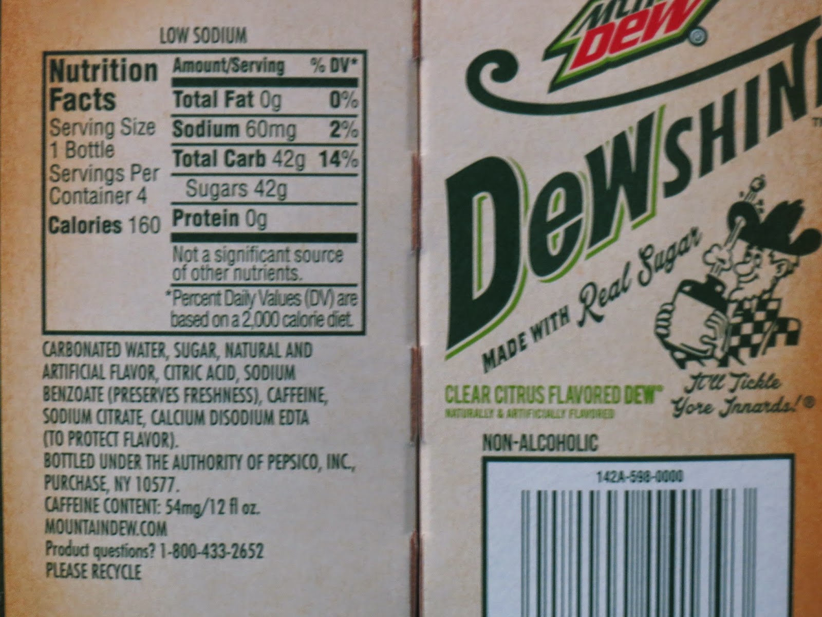 Obviously, the variation is meant to mimic the moonshine runners of yore, in more ways than one. The actual exterior packaging seems to replicate a cardboard box, and even features a crude hillbilly stereotype cartoon character lifting a jug of home-made (and probably toxic) liquors, stating oh-so-humorously that the contents of said container will, and I quote, "tickle your innards." PepsiCo even went the next step and included a warning on the package that the contents therein actually aren't alcoholic, which has to be the first label of its type that I have seen on any mainstream soda.
