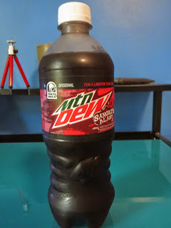 Of course, Dewshine ain't the only Dew spin-off on store shelves this summer. Pictured above is the all-new (but technically, not really) Mountain Dew Sangarita Blast, which has been a Taco Bell in-house exclusive up until now. For those of you unfamiliar with the beverage, it's basically the same thing as the beloved Baja Blast Dew variation, although with a slight  pinch of cranberry. Or a really, really overpowering cherry. Or maybe even strawberry. You know, there might even be some apple in there, too -- the important thing to take away here is that it tastes a lot thicker and more bitter than just about anything else with the words "Mountain Dew" plastered on it, and if that sounds like your kind of drink, by golly, buy this shit by the truckload.