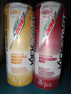 And then there are the newfangled Mountain Dew Kickstart Energizing pineapple orange mango and strawberry kiwi variations (yeah, I know these things technically came out in winter, but I am just now getting around to trying them out.) To be frank, I wasn't really a huge fan of the first two waves of Kickstart offerings, but I actually liked these scaled back, coconut water-based drinks a lot more than I thought I would.  The strawberry-kiwi combination, despite being the same hue and texture as cough syrup, was pretty flavorful, but it's the pineapple-orange-mango drink that's really worthy of your attention, since it seems to be the closest contemporary consumers are likely to get to a relaunch of the gloriously underrated Pepsi Next Paradise Mango cola from a few summers ago.