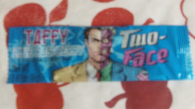 Not surprisingly, the two pieces of candy that caught me attention first were the two “mystery flavors” with the Joker’s face plastered on them. Since the set consists primarily of characters seen in Nolan’s second Bat-movie, I’m thinking that, perhaps, this thing was initially released to capitalize on the success of “The Dark Knight.” By extent, this also means that the candies themselves would be almost five years old now, but come on…it’s not like the Dollar Tree ever sells products past their expiration dates or anything.