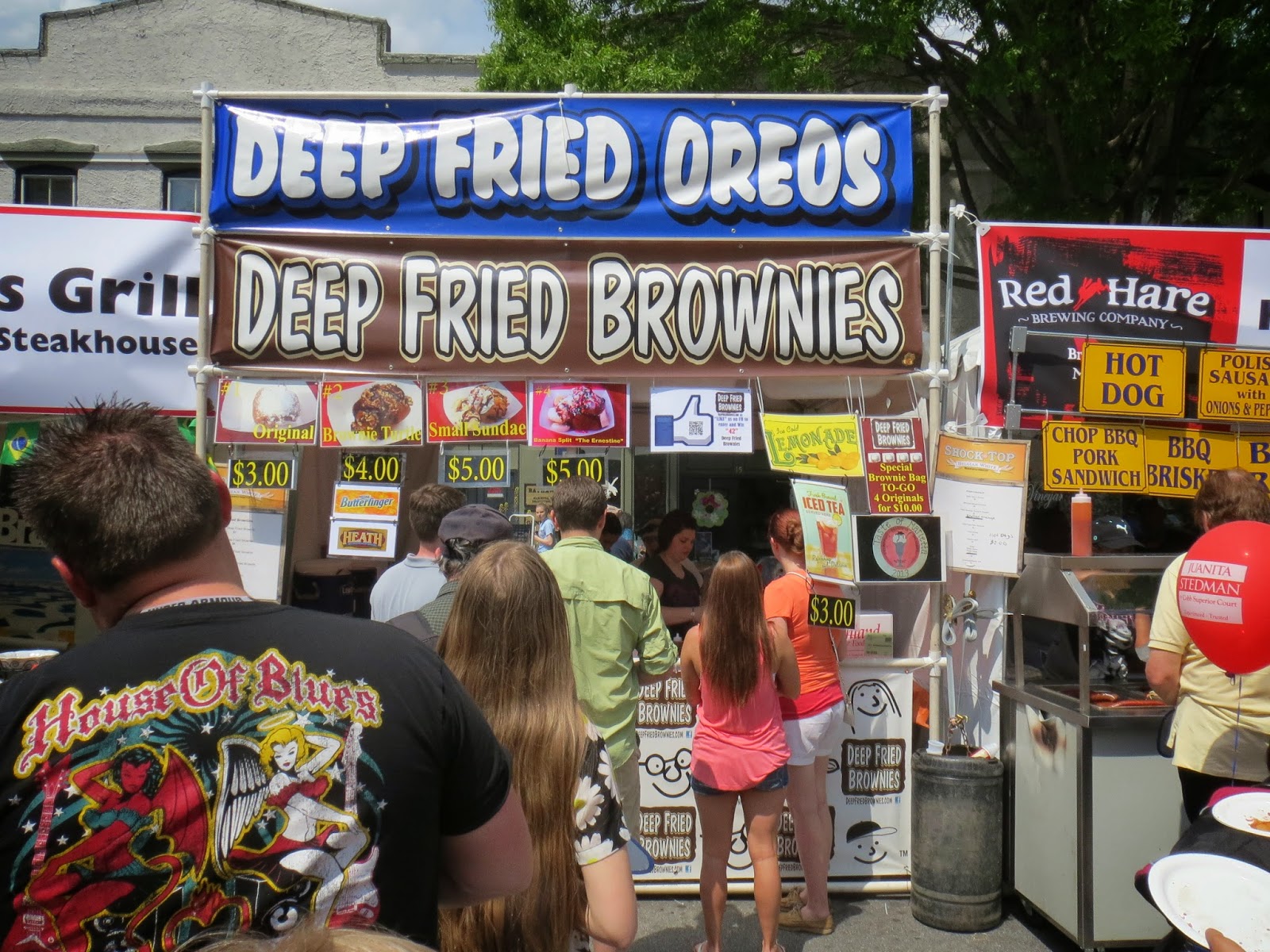 So, there's this thing in Marietta called "The Square," which is home to about a million billion restaurants and this old ass theater that sometimes shows public domain zombie movie marathons. It's also the alleged site of a Doobie Brothers mini-riot in the late 1970s, but for the sake of historicity, I cannot confirm or deny said allegation fully. Anyway, the Taste of Marietta festival was held in a gigantic, cordoned off block of the Square, where a good hundred or so vendors -- mostly, restaurants, but also a few weird ones, like a Harley Davidson booth, of all things -- were lined up like dominoes. And since it's an election year, there were a whole bunch of local politicians and their sycophants out in full force. Ironically enough, most of their makeshift gazebos were situated adjacent to a row of Port-a-Johns, but I digress
