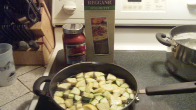 Once your squash is all nice and, uh, squashed, it’s time to break out the KNOCKOFF SAUCE. It’s a pretty simple process, really - just open the can, make the sign of the cross, dump it all over your veggies and simmer.