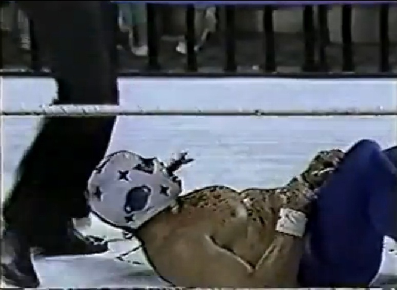 In America, there’s this group called PETA (People that Eat and Torture Animals) that like to pitch hissy fits every time somebody steps on a slug or butchers a sea turtle for entertainment purposes. And if Ingrid Newkirk ever drops by your place and asks you to turn on some wrestling, this is probably the first or second video I would advise showing her.