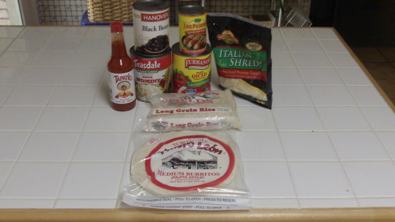 Even so, I wondered just what I could MacGuyver up with the produce found at the local Tree. I saw a Cinco de Mayo in-store display earlier this year, so for the better part of 2011, I’ve been musing whether or not I could craft a halfway decent burrito using less than $10 of Dollar Tree goods. So to commemorate the month where Americans stuff more down their throat holes than any other time of the year, I’ve decided to finally make good on my promise to concoct such an economical Frankenstein of a food. . .and I’ve even included a step-by-step guide so you can replicate the experiment for yourself!
