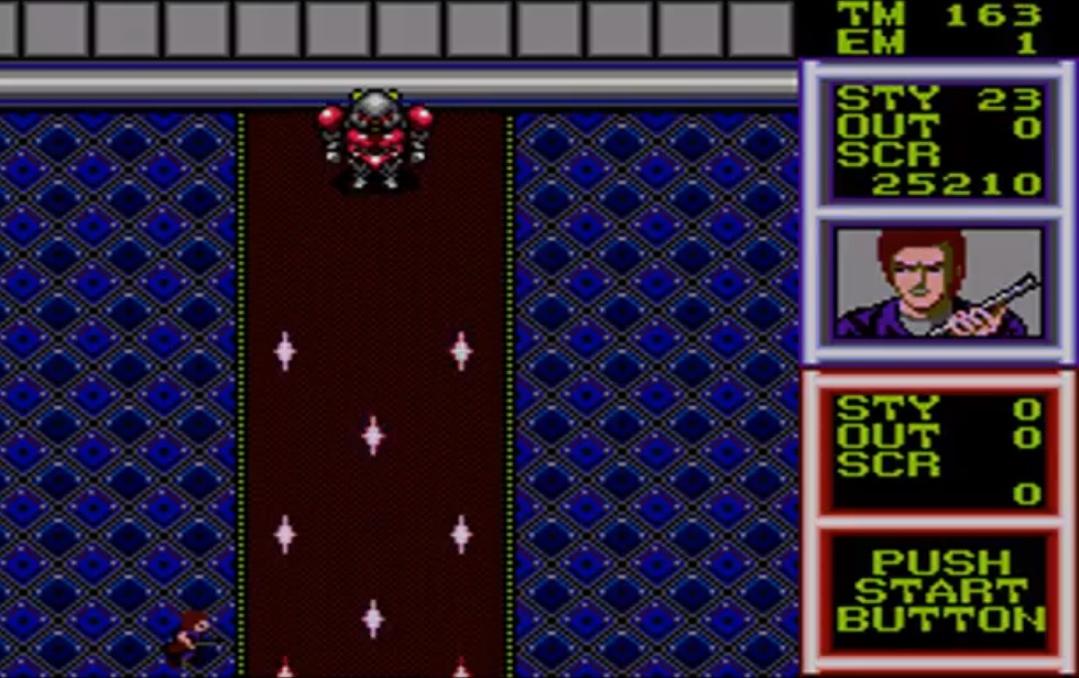Ladies and gentlemen, I give you what is far and away the best Light Phaser game to be found on the Sega Master System. Not only does this one stand head and shoulders above stuff like Rambo, I can’t think of a single light gun game on the NES that outdoes this one, and that includes Duck Hunt. Rather than give us yet another brain-dead blast-a-thon, Sega actually gave us a title that requires a little grey matter here, as the whole game revolves around you playing bullet-spittin’ protector of a medical convoy as it makes its way around the train tracks surrounding an unmitigated war zone. Of course, this being a Light Phaser game and all, that means ambushers galore are all over the screen, and it’s your duty to help clear the screen of any obstacles (be they breathing or otherwise) so the Red Cross can do their due diligence. With exquisitely laid out levels and some edge-of-your-seat firefights, this is definitely a gripping and engrossing little affair right here — it might not look like it, but this is definitely one of the more surprisingly addictive games to be found on the SMS.