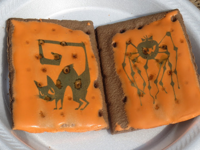 Of course, Kellogg's hasn't done anything too dramatic here. The fudge flavor is the same as it's always been, and the overall design of the Pop-Tarts (transformed by the company's proprietary "Printed Fun" technology, i.e., the same edible ink advent that gave us Justice League 'Tarts a while back) isn't that revolutionary. Still, I'm glad I snapped these motherfuckers up when I did - this beat to shit box was literally the last one I've seen on shelves anywhere for at least three weeks. Huh. Releasing a Halloween-branded food that leaves stores come the first week of October ... now that is some truly contrarian marketing philosophy.