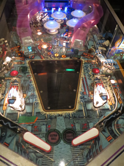 While the first installment focused exclusively on arcade video game, part two-oh is going to focus exclusively on pinball units (with a brief detour halfway through, but trust me, these photos are worth deviating from the script.) I've never been one for pomp and/or circumstance, so let's cut the grandiloquent showmanship and get straight to the tables, why don't we? Yeah, I didn't surmise you'd have any problems at all with such directness ...