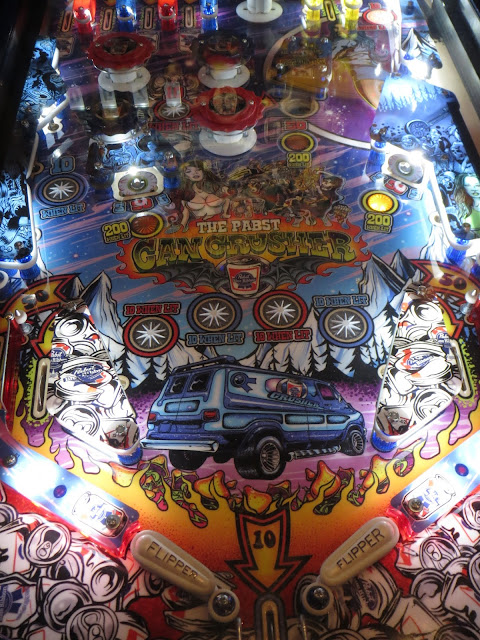 Here's another of those "neo-retro" pinball units. I'm not sure who made it, but considering the extent of the product placement, one would simply assume that it's got the official blessing of Pabst Blue Ribbon - I take it that means American Spirit cigarettes backed out at the last second.
